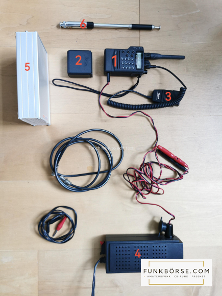 - Funkgerät (1) mit flexibler Original-Gummiwendelantenne und 1x Anschlussadapter CMA550 für Netzteil oder Autostrom, inkl. Bedienungsanleitung